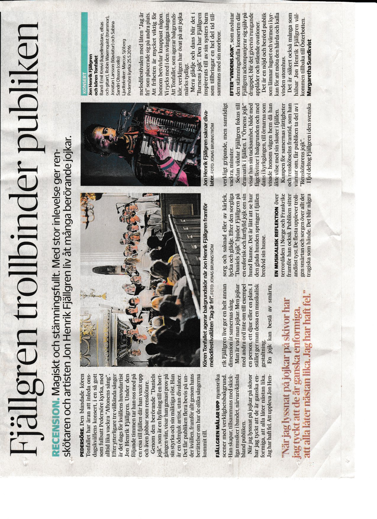 Tonfallet agerade "uppvärmningsband" samt sjöng med i hans kanske mest kända sång "Jag är fri". Vi inledde konserten med fyra sånger (Aftonens sång, Plocka vill ja skogsviol, Var är vägens mål och Så skimrande var aldrig havet) som sjöngs underledning av Minna Rusanen till pianokomp av Jan Holmgård.