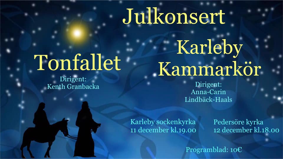 I år håller vi en gemensam julkonsert med Karleby kammarkör. Vi gör två konserter, en i Karleby sockenkyrka och en i Pedersöre kyrka.